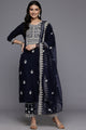 Dhiyona Navy Blue Round Neck Thread Embroidered Kurta Paired With Bottom And Dupatta