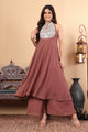 Dhiyona Nude Yoke Embroidered Sleeveless Flared Kurta With Trousers
