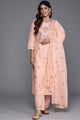 Dhiyona Peach Thread And Sequins Embroidered Kurta With Tonal Bottom And Dupatta