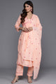 Dhiyona Peach Thread And Sequins Embroidered Kurta With Tonal Bottom And Dupatta
