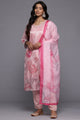 Dhiyona Pink Silk Floral Printed Beads And Stones Embellished Kurta Set With Dupatta