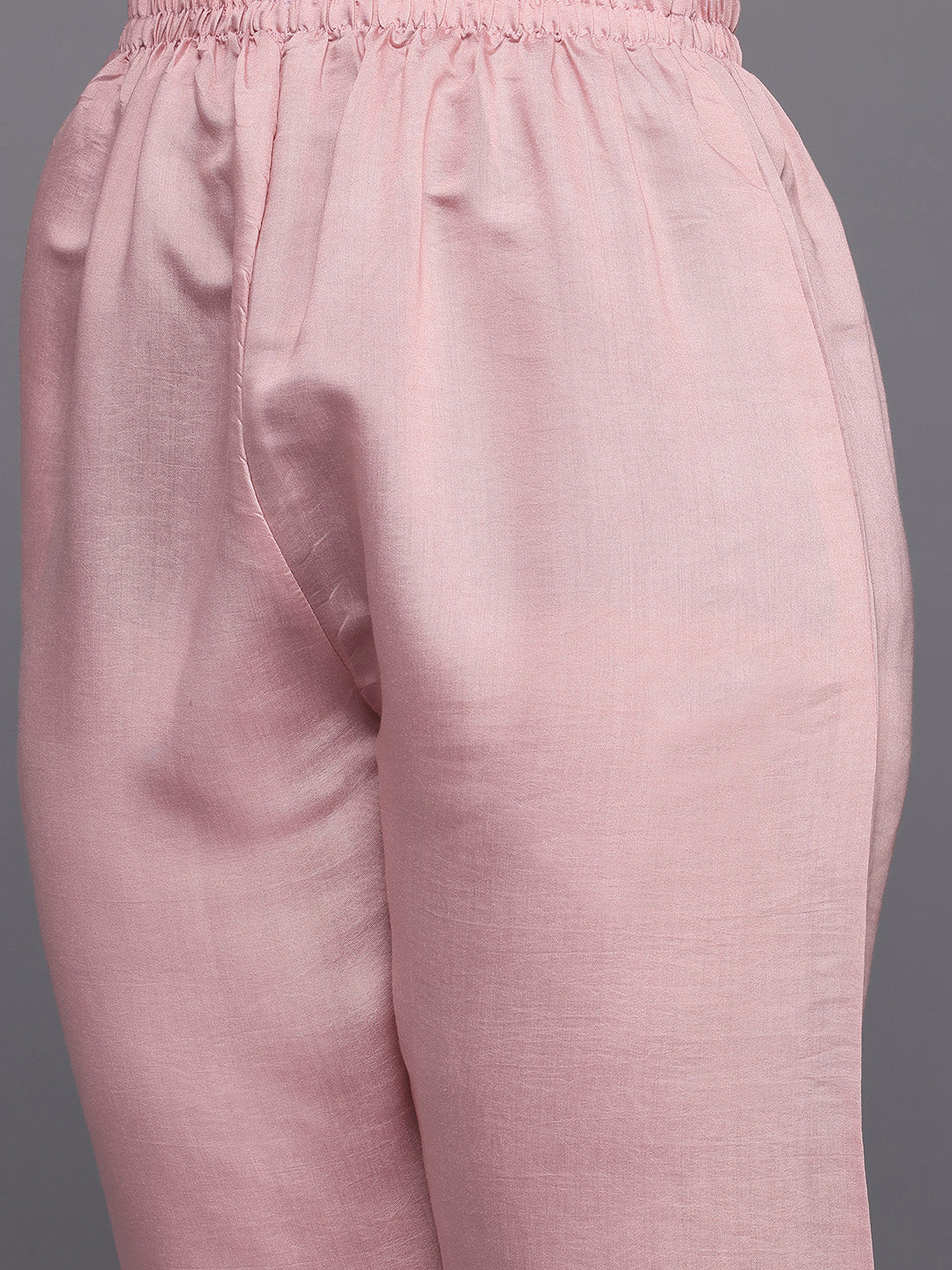 Dhiyona VR Women's Pink Silk Floral Printed Beads And Stones Embellished Kurta Set With Dupatta