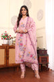 Dhiyona VR Women's Pure Mauve Kantha Hand Embroidered Kurta Set With Dupatta