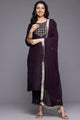 Dhiyona VR Women's Purple Thread Embroidered Sequins Embellished Straight Kurta Paired With Bottom And Dupatta