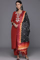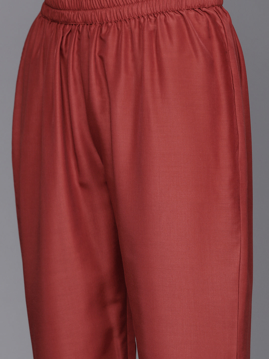 Dhiyona VR Women's Rust Zari Kurta With Solid Trouser And Dupatta Set
