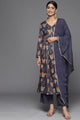 Dhiyona Violet Sequin Embellished V-Neck A-Line Kurta Paired With Tonal Bottom Amd Dupatta