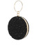 Striking and sophisticated, this black round box clutch features intricate embroidery that adds texture and charm to its compact silhouette. Designed with a twist closure and a convenient wrist loop, it opens to a single main compartment--ideal for carrying your phone, cards, and touch-up essentials. Whether paired with a cocktail dress or ethnic wear, this clutch offers a bold accent with timeless appeal.