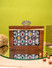 Artisanal and eye-catching, this box clutch blends wooden and black tones with vibrant multicolored embroidery for a handcrafted, statement-making finish. The structured silhouette opens with a secure click closure to reveal a single main compartment, while the wrist loop ensures easy carry. Pair it with printed sarees, embroidered kurtas, or fusion sets to add texture, color, and charm to your celebration look.