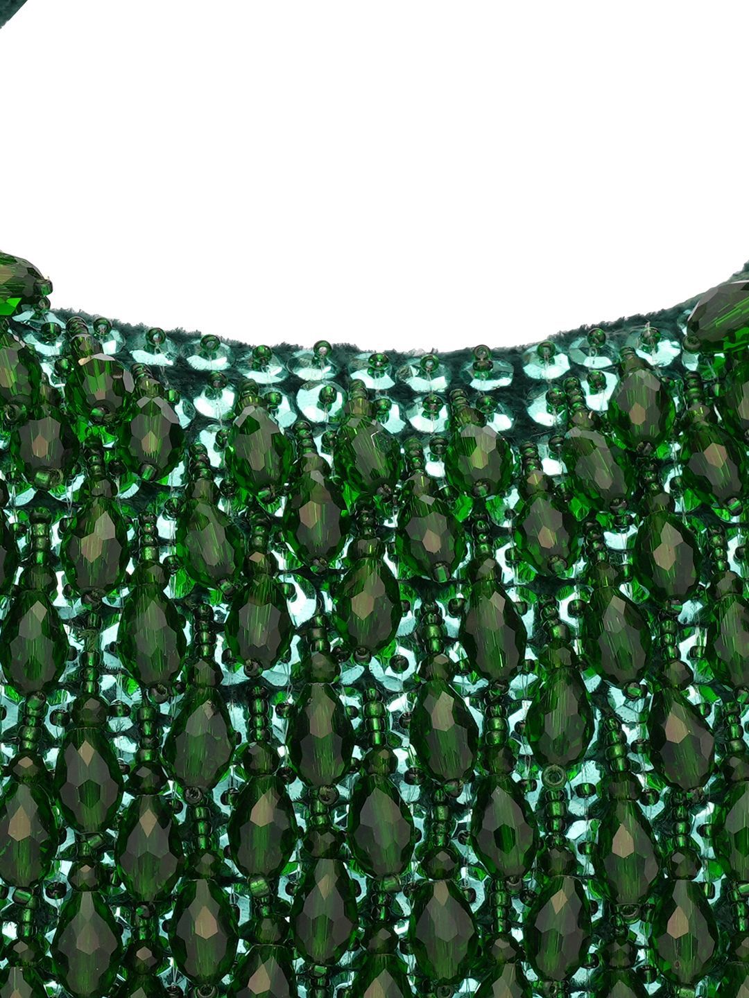 Chic and statement-making, the NR by Nidhi Rathi Green Embroidered Half Moon Clutch combines a distinct crescent silhouette with intricate embroidery and elegant embellishments. Finished with a zip closure and an easy-to-carry wrist loop, this clutch pairs beautifully with vibrant sarees, embroidered kurta sets, or contemporary Indo-western wear--perfect for festive outings or intimate celebrations when you want bold style in a compact form.