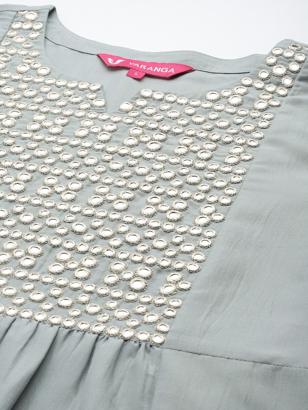 Dhiyona VA Women'sEmbroidered Empire Mirror Work Kurta With Trousers & With Dupatta