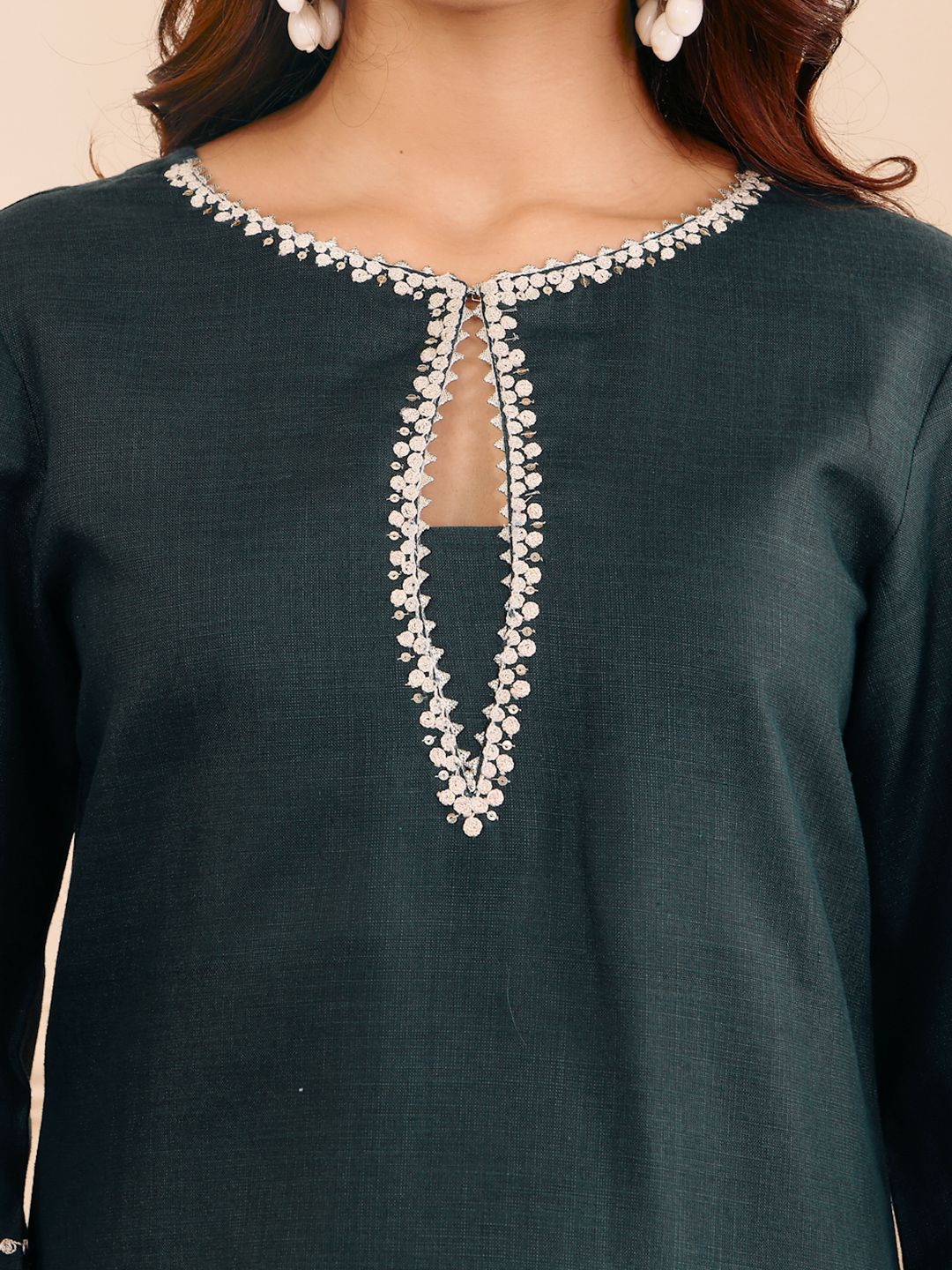 Dhiyona VA Women'sEmbroidered Straight Sequinned Kurta with Palazzos