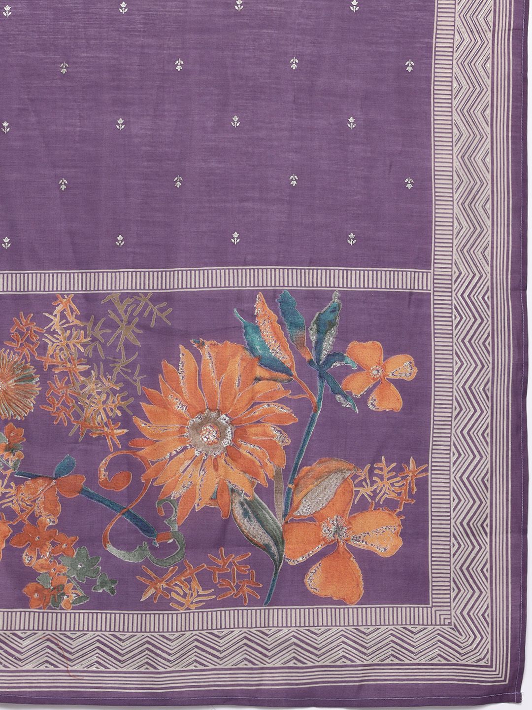 Dhiyona VA Women'sEthnic Floral Printed Sequinned Kurta With Trousers & Dupatta