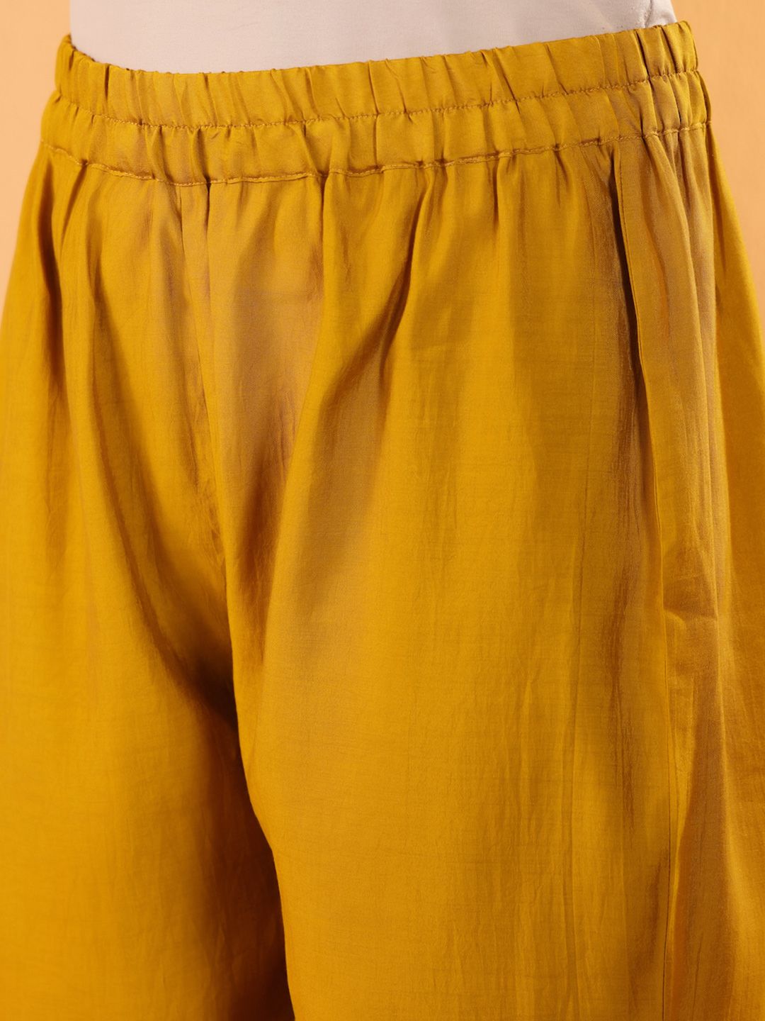 Dhiyona VA Women'sEthnic Motifs Embroidered Gotta Patti Notch Neck Chanderi Silk Kurta With Trousers