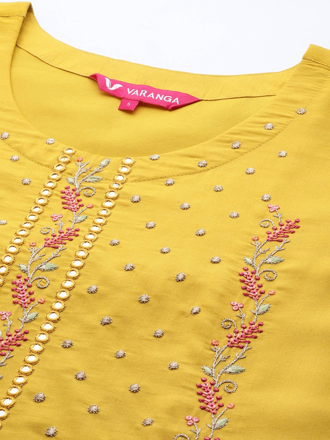 Dhiyona VA Women'sEthnic Motifs Embroidered Mirror Work Kurta With Trousers & With Dupatta