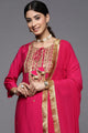 Fuchsia embroidered Kurta with Trousers with dupatta