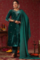 Dhiyona IS Women's Ethnic Motifs Embroidered Velvet Straight Kurta & Trousers With Dupatta