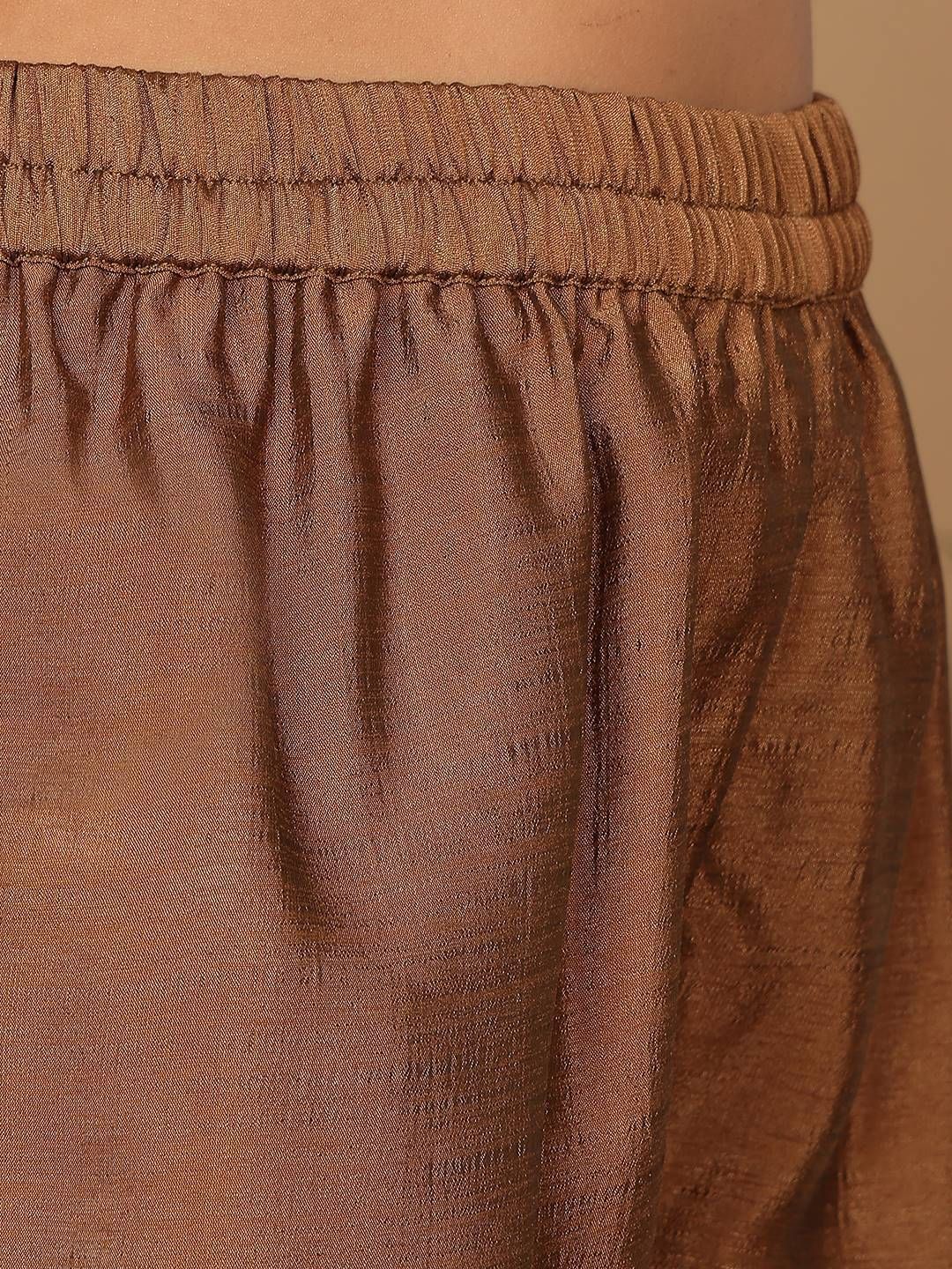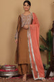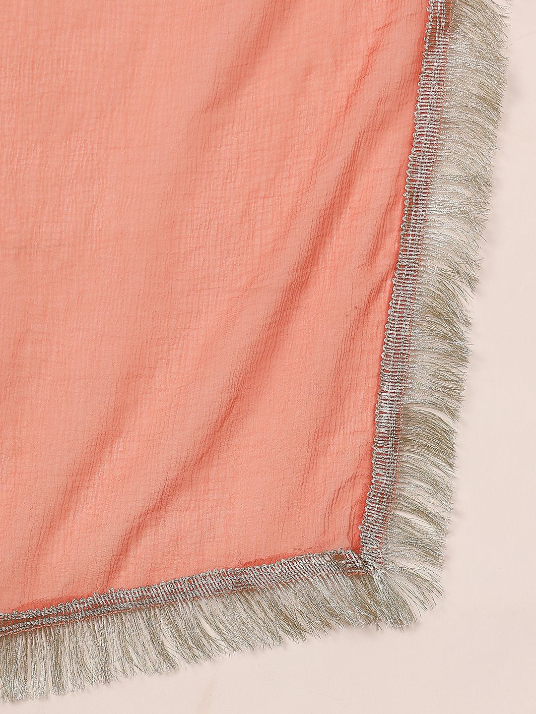 Mustard yellow & coral , gold toned embroidered Kurta with Trousers with dupatta