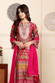 Fuchsia,yellow,white printed kurta with trousers and dupatta