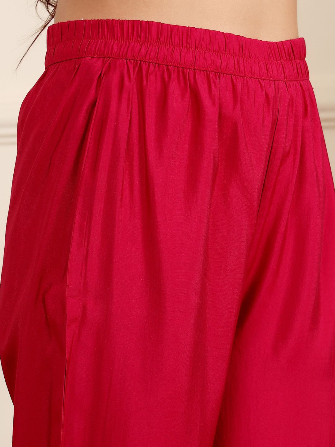 Dhiyona VA Women'sEthnic Motifs Printed Gotta Patti Chanderi Silk Kurta With Trousers And Dupatta