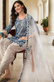 Blue and White printed Kurta with Dhoti Pants & Dupatta