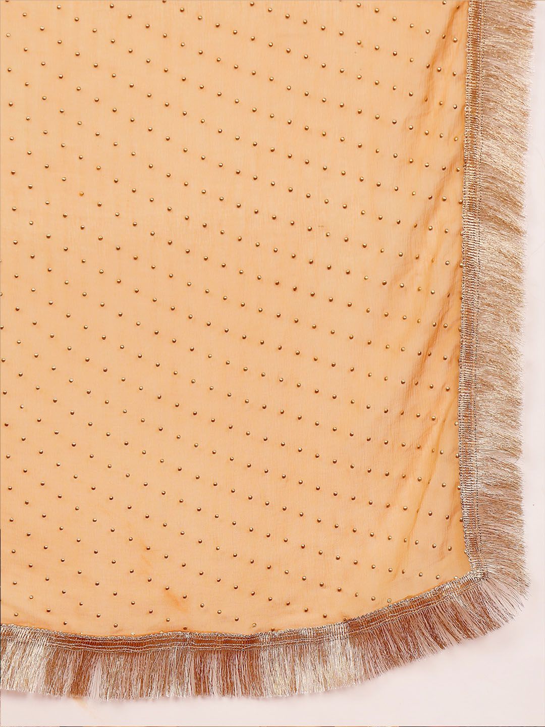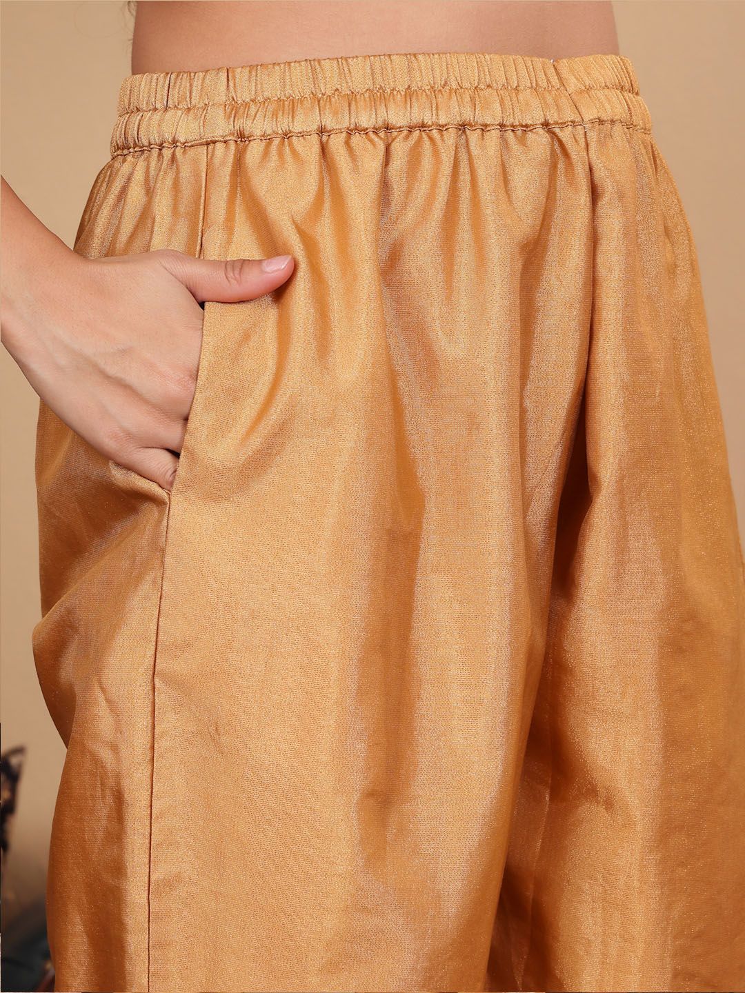 Beige & gold-toned woven design Kurta with Trousers with dupatta