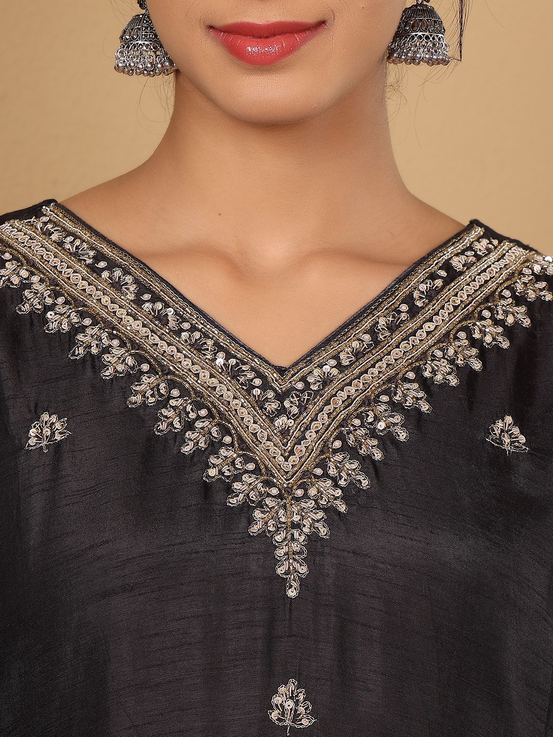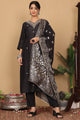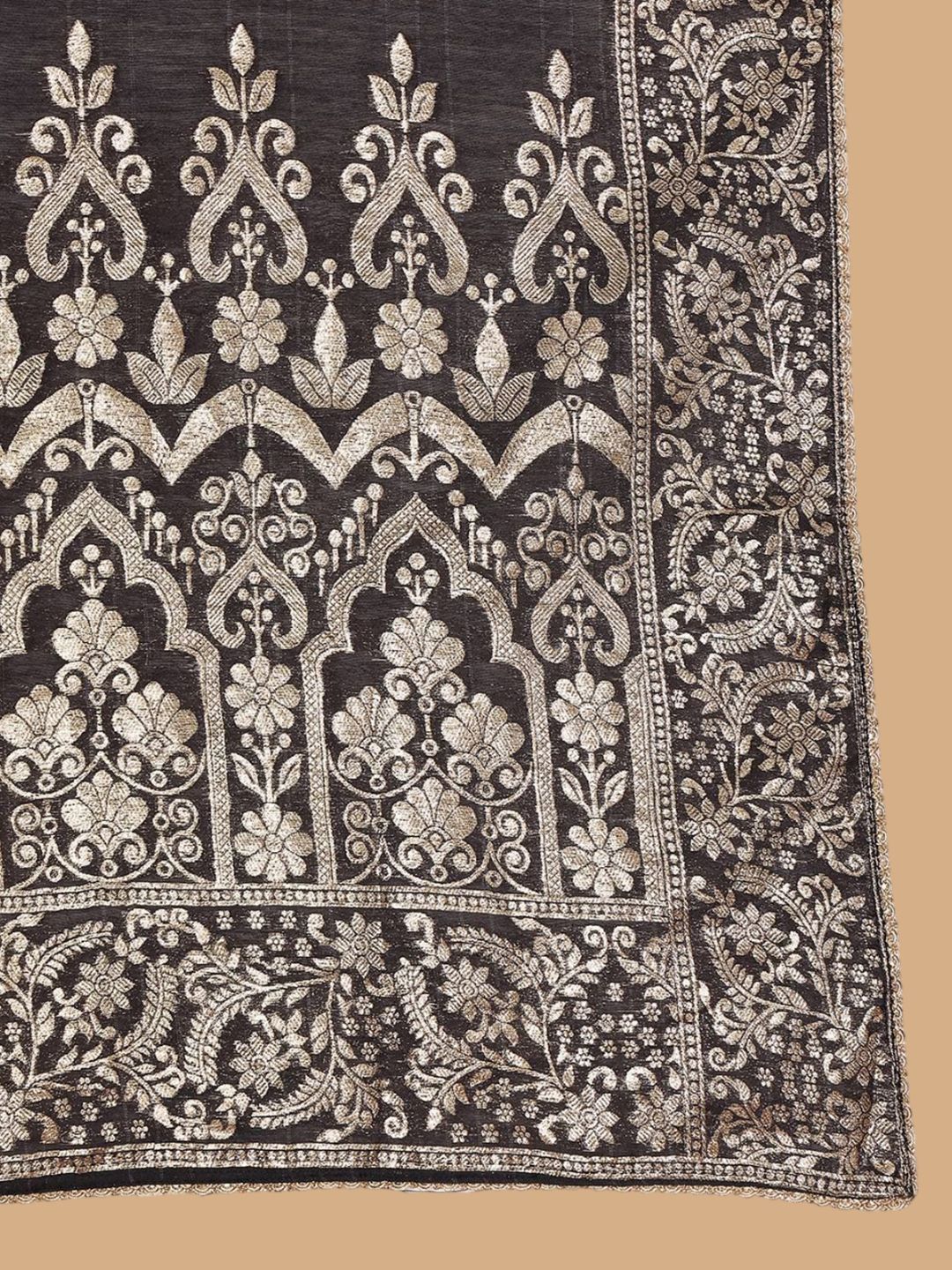Black & gold toned woven design Kurta with Trousers with dupatta