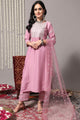 Dhiyona VA Women'sEthnic Motifs Yoke Design Mirror Work Straight Kurta With Trousers & Dupatta