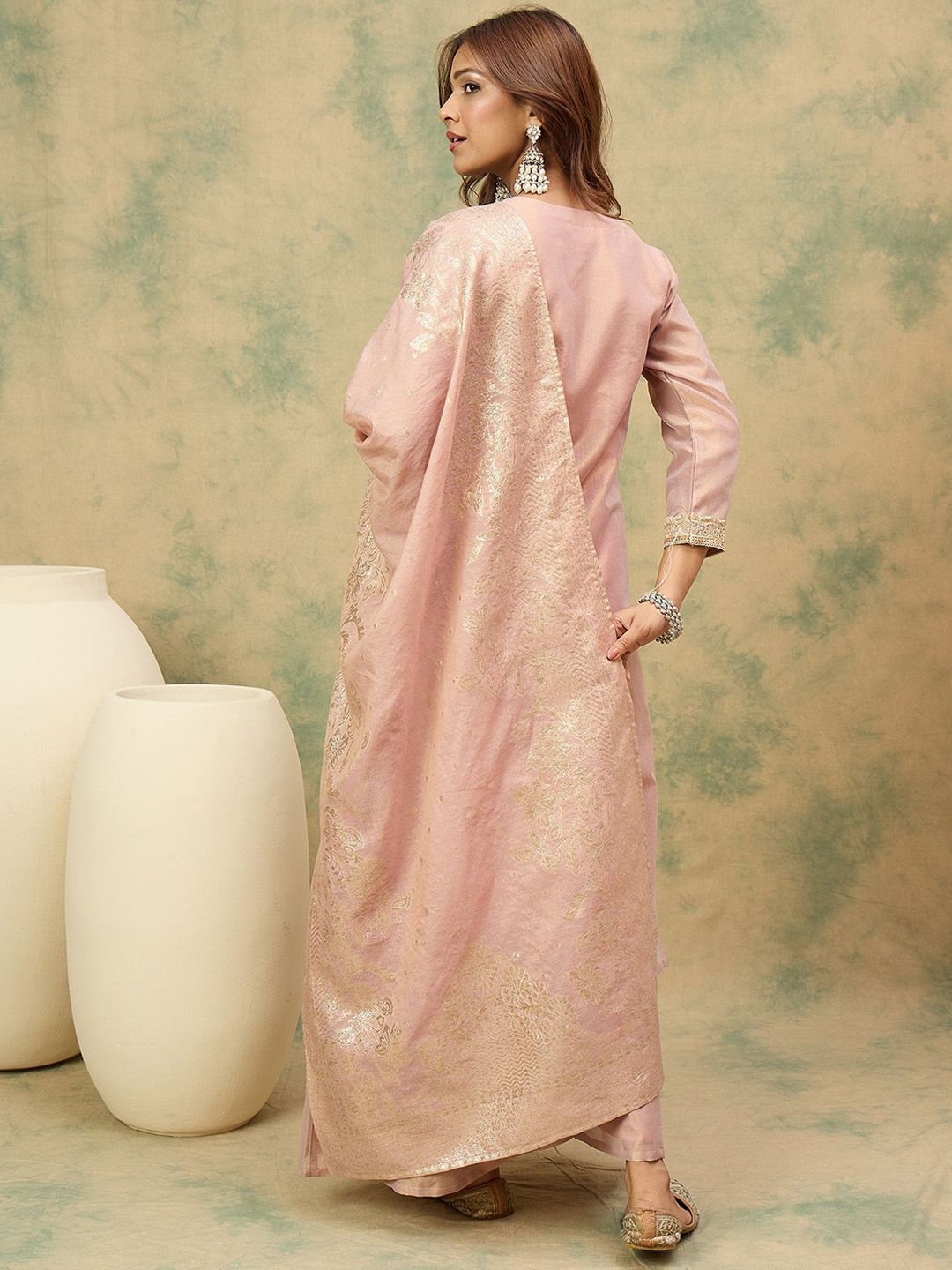 Peach-coloured yoke design Kurta with Palazzos and dupatta