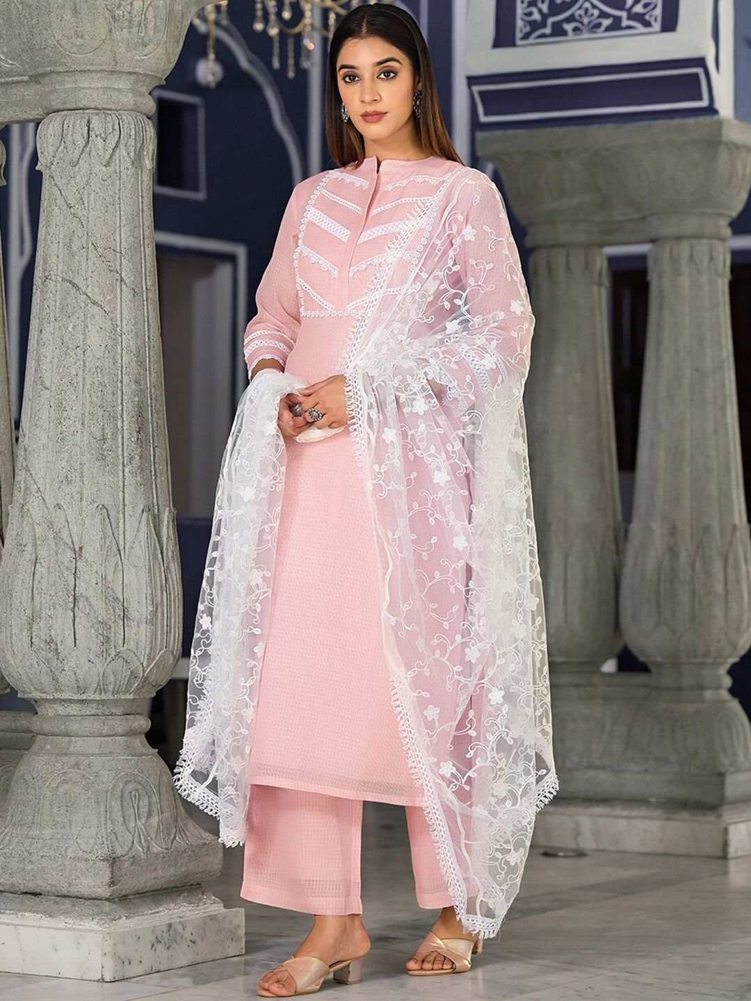 Dhiyona VA Women'sEthnic Motifs Yoke Design Regular Thread Work Kurta with Trousers & Dupatta