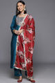 Teal yoke design Kurta with Trousers with dupatta