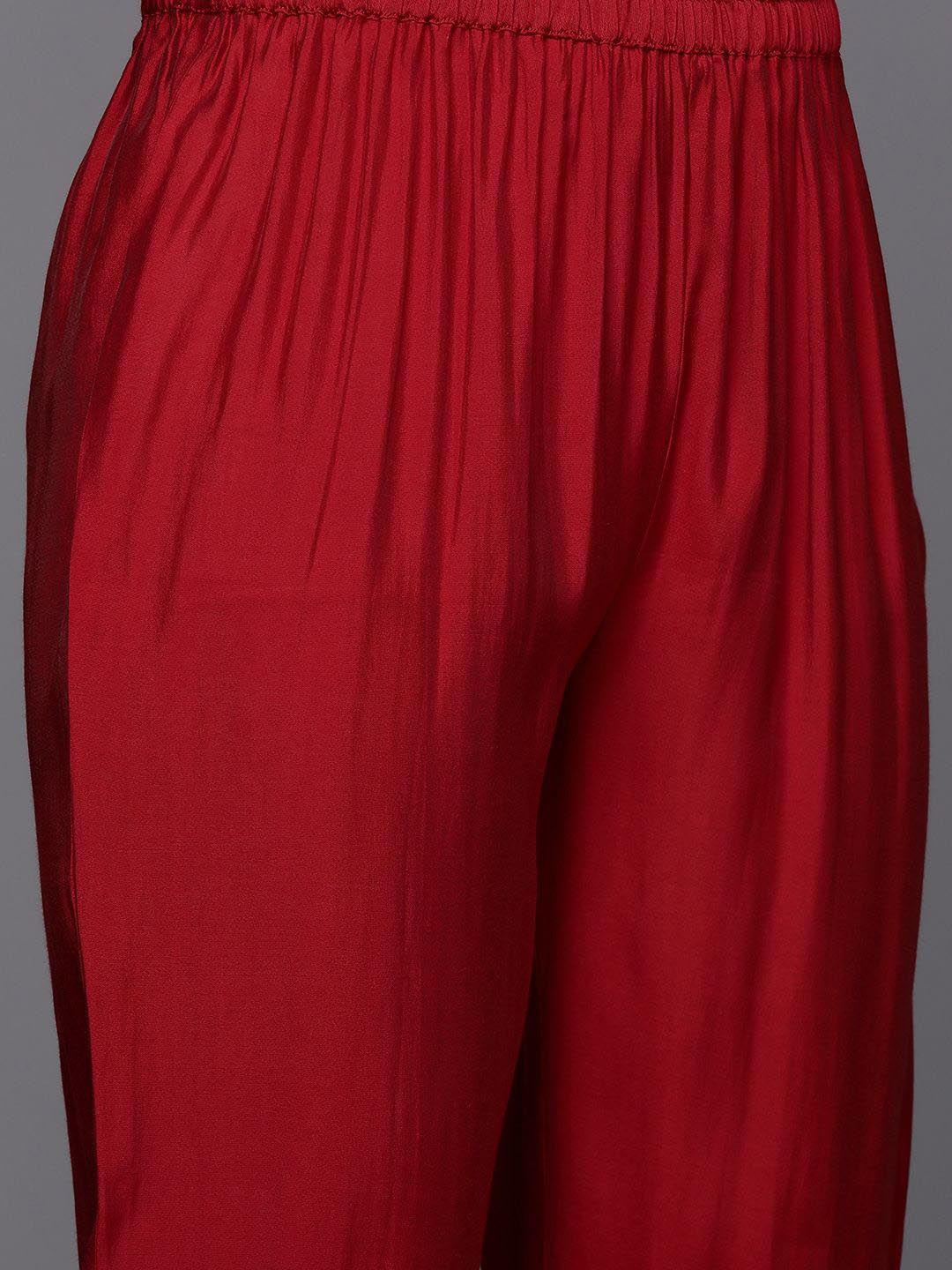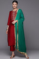 Red, green & beige yoke design Kurta with Palazzo with dupatta