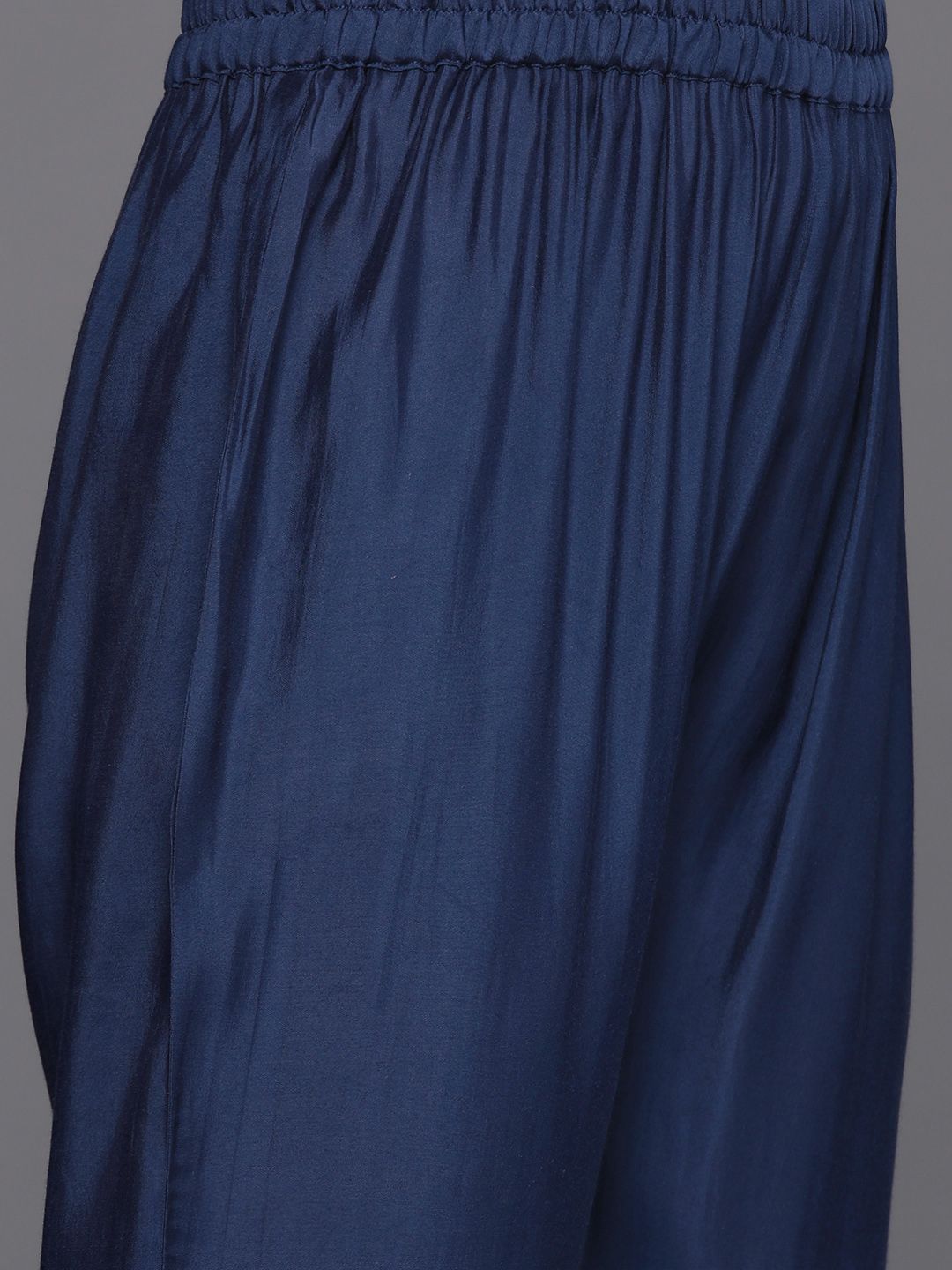 blue embroidered kurta with embroidered trouser and blue dupatta.