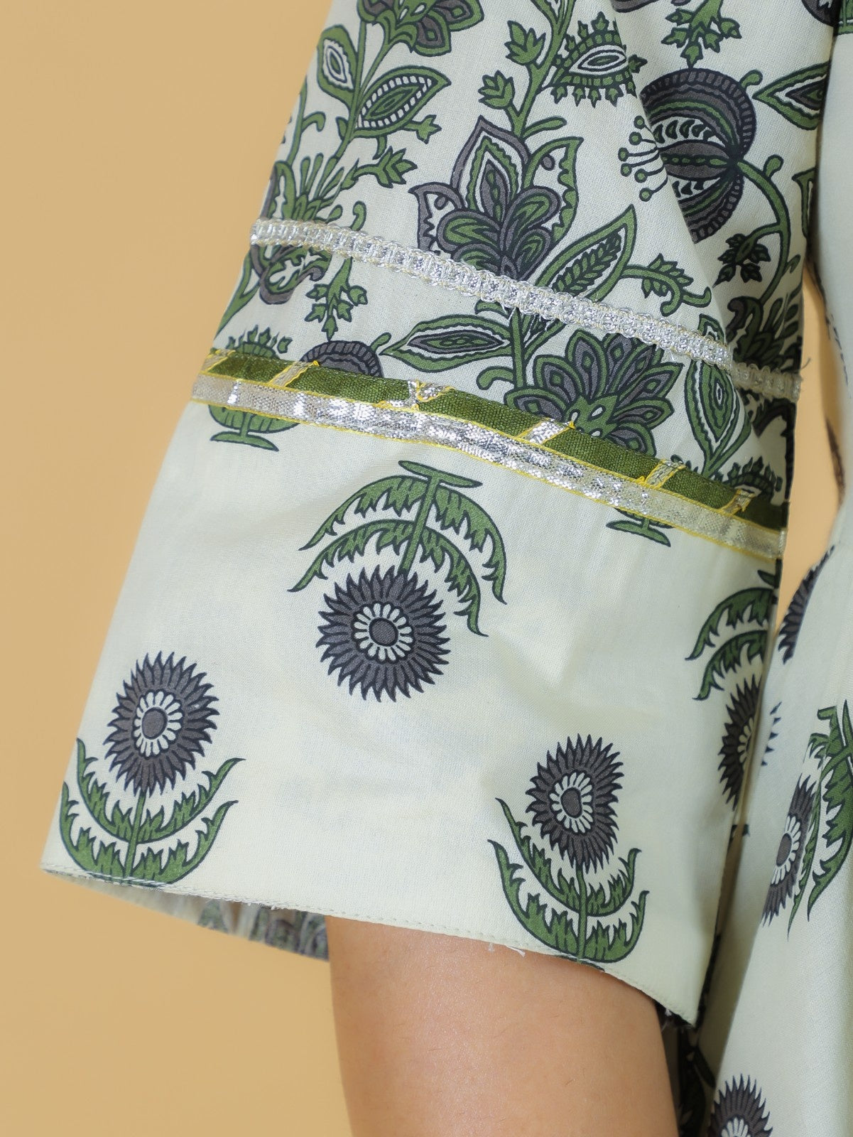Color: Off White||Fabric: Cotton||Type: Flared||Print: Block