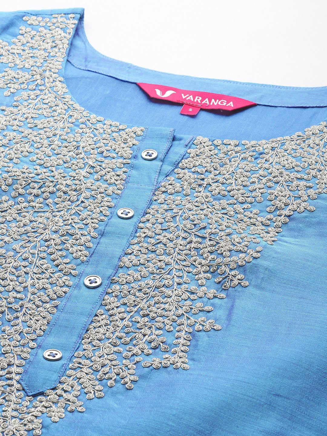 Dhiyona VA Women'sFloral Embroidered Chanderi Silk Kurta With Trousers & Dupatta