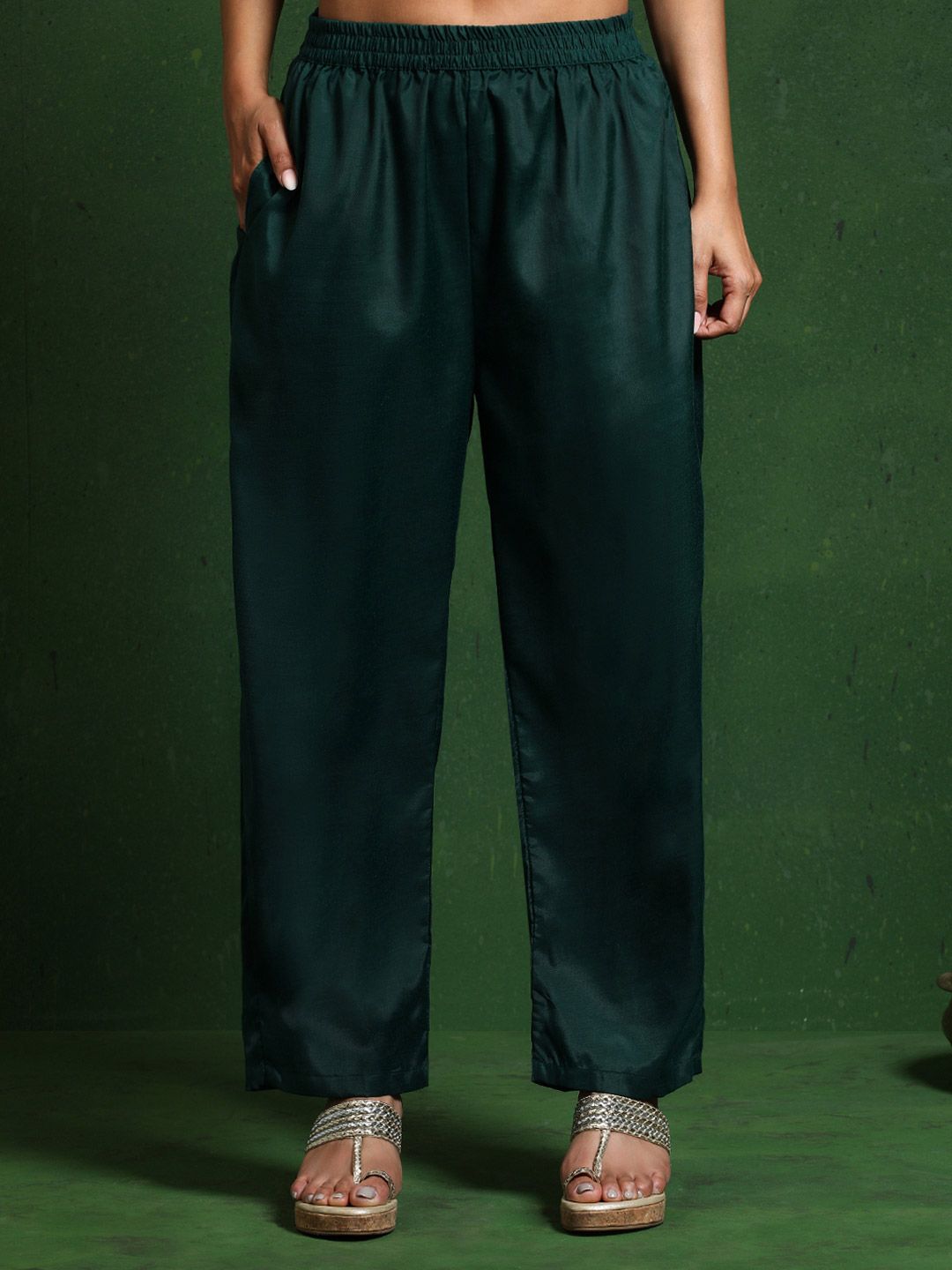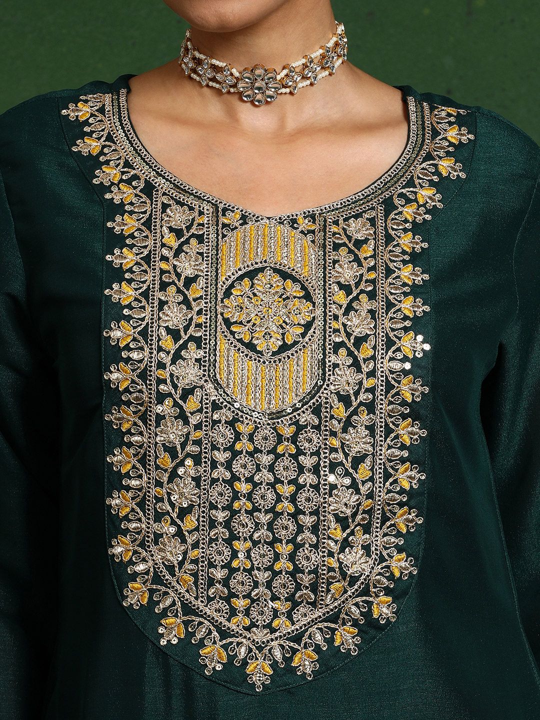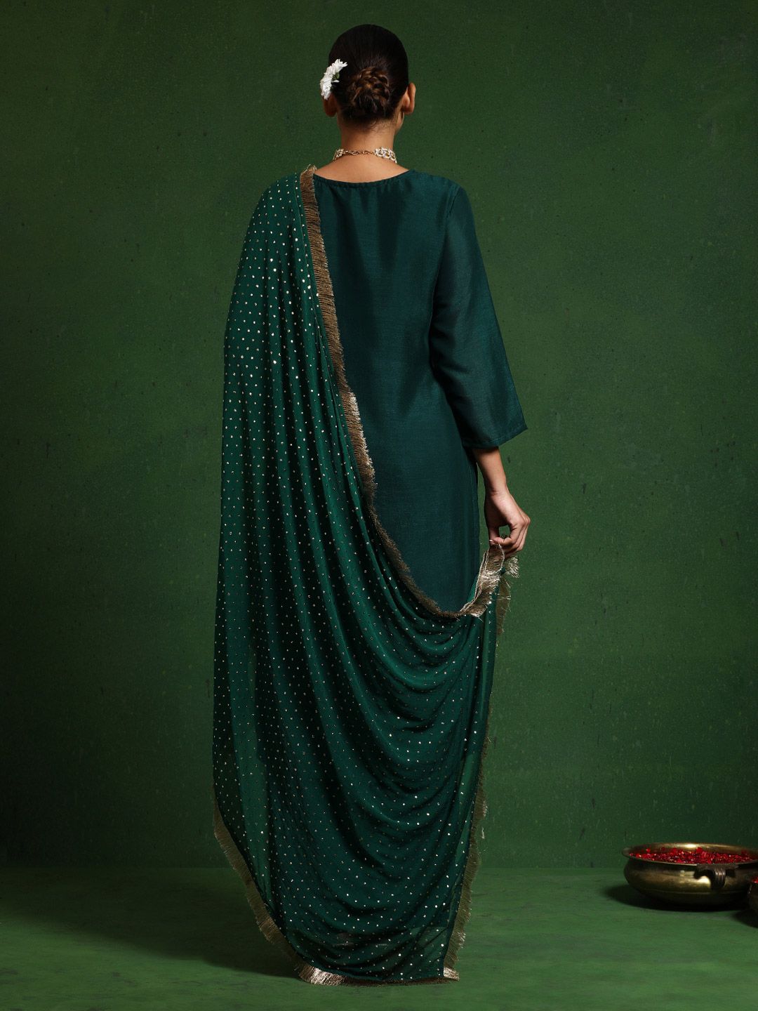 Dhiyona VA Women'sFloral Embroidered Cotton Silk Zari Work Straight Kurta With Trousers & Dupatta