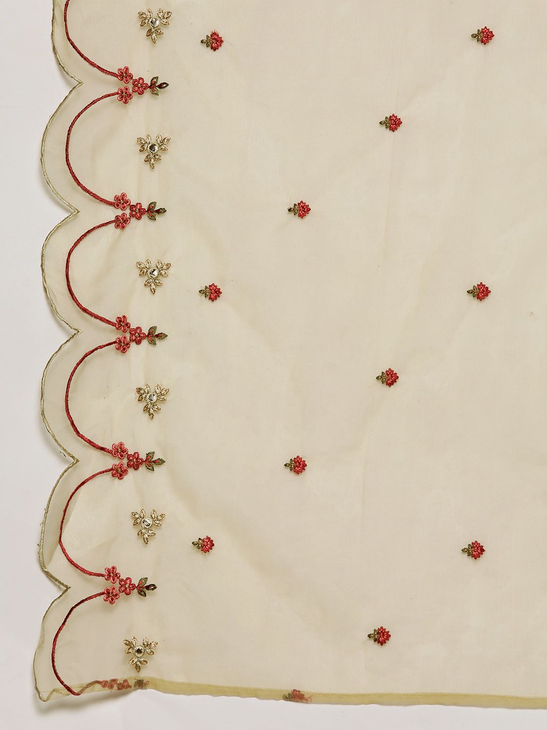 Dhiyona VA Women'sFloral Embroidered Mirror Work Kurta with Trousers & Dupatta
