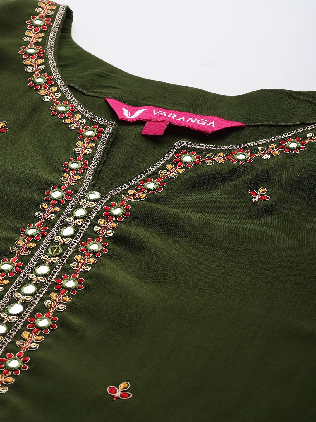 Dhiyona VA Women'sFloral Embroidered Notch Neck Mirror Work Straight Kurta With Trousers & Dupatta