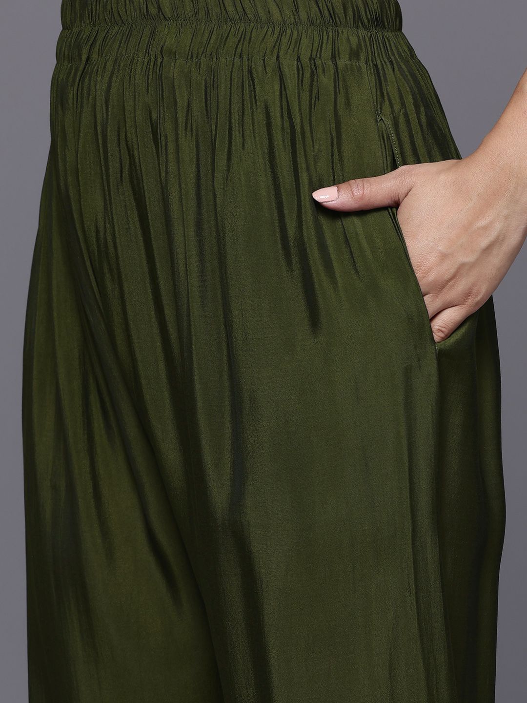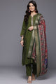 Olive green and gold-toned embroidered kurta with trousers and dupatta