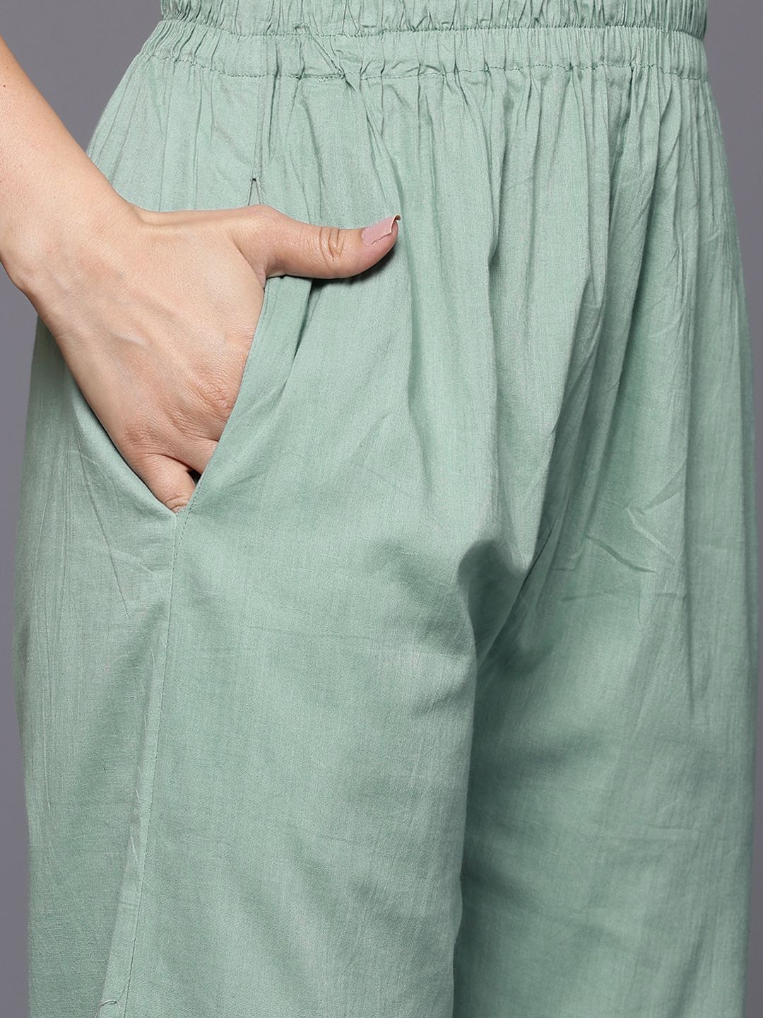 Sea green embroidered Kurta with Trousers with dupatta