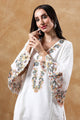Dhiyona VA Women'sFloral Embroidered Pure Cotton Flared Sleeves V-Neck Straight Kurta With Trousers