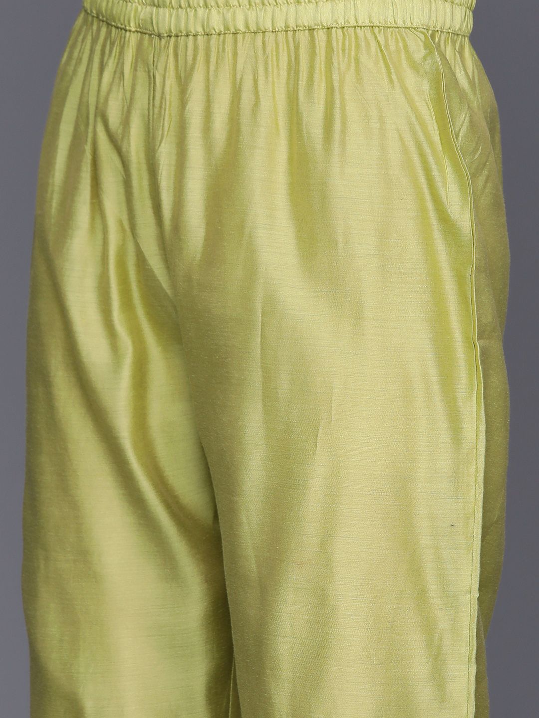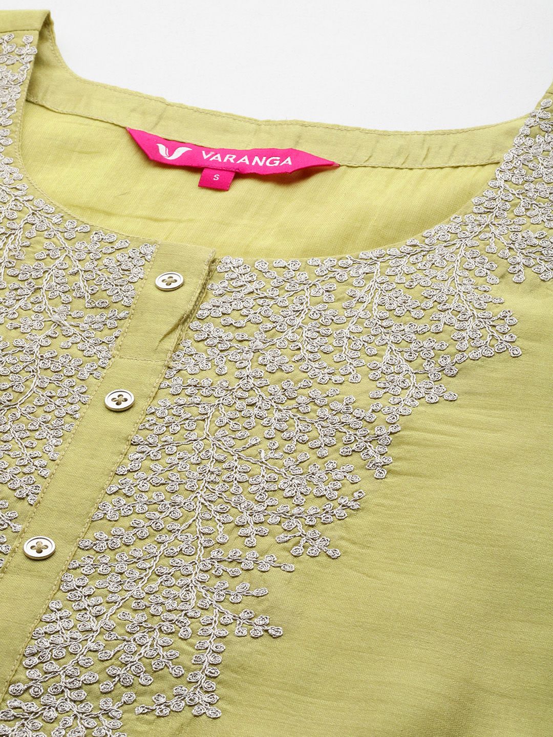 Dhiyona VA Women'sFloral Embroidered Regular Chanderi Silk Kurta with Trousers & Dupatta