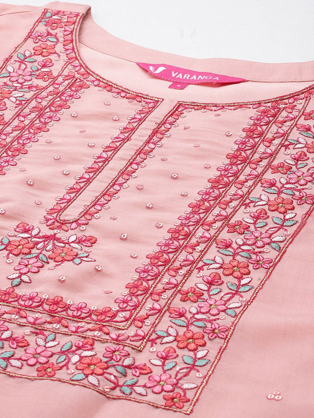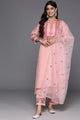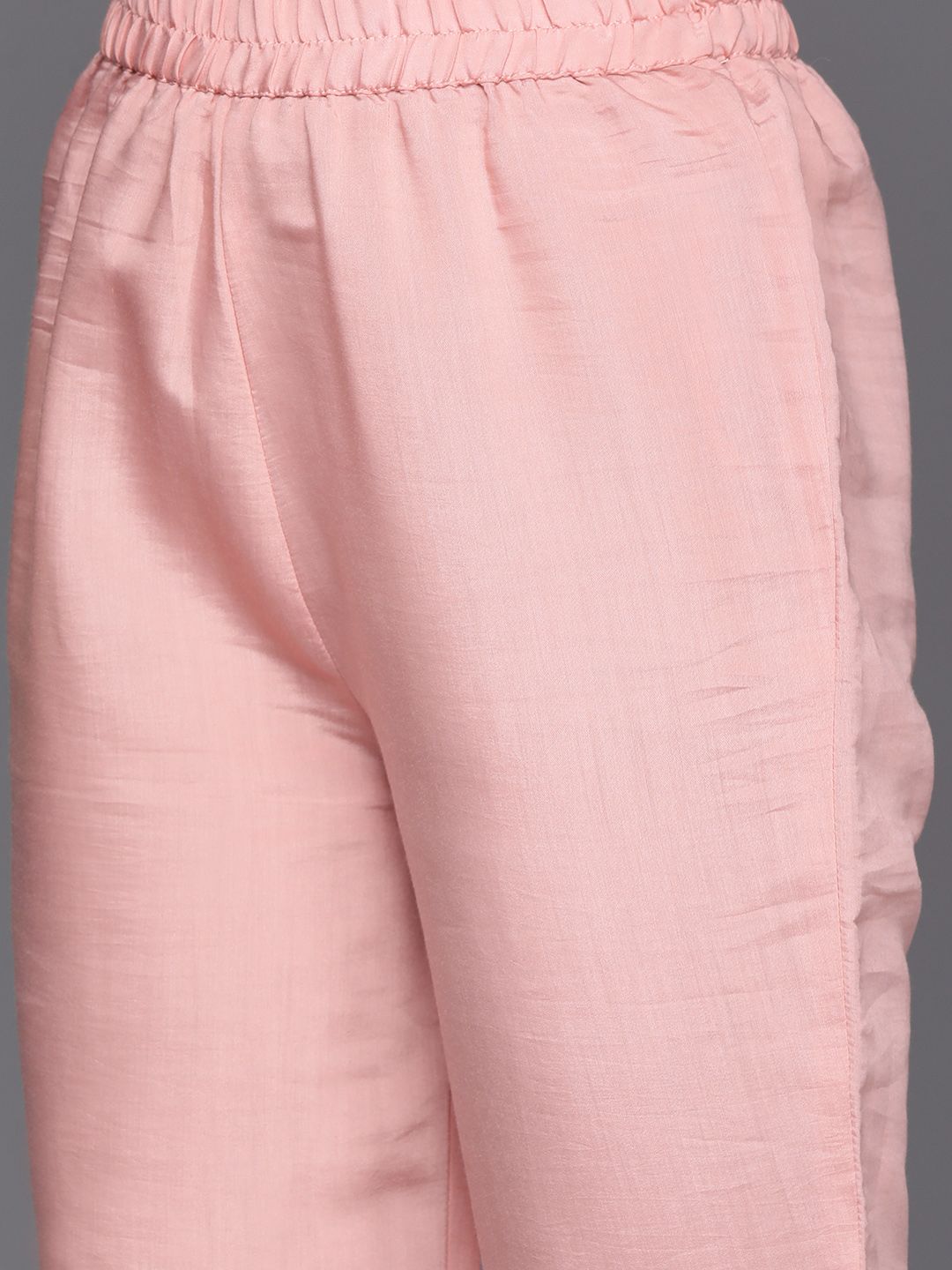Peach-coloured embroidered Kurta with Trousers with dupatta