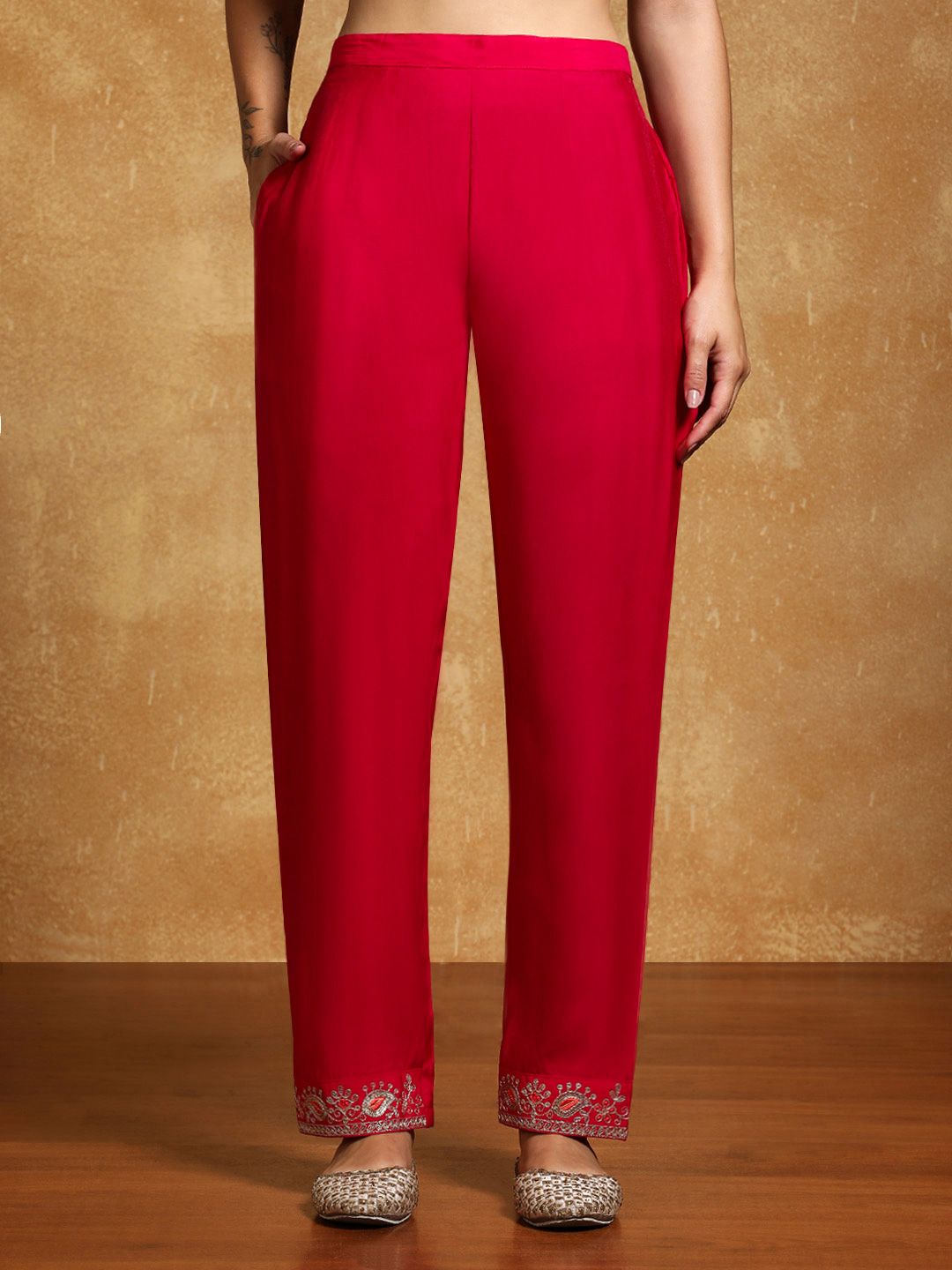 Dhiyona VA Women'sFloral Embroidered Round Neck Straight Kurta With Trousers & Dupatta