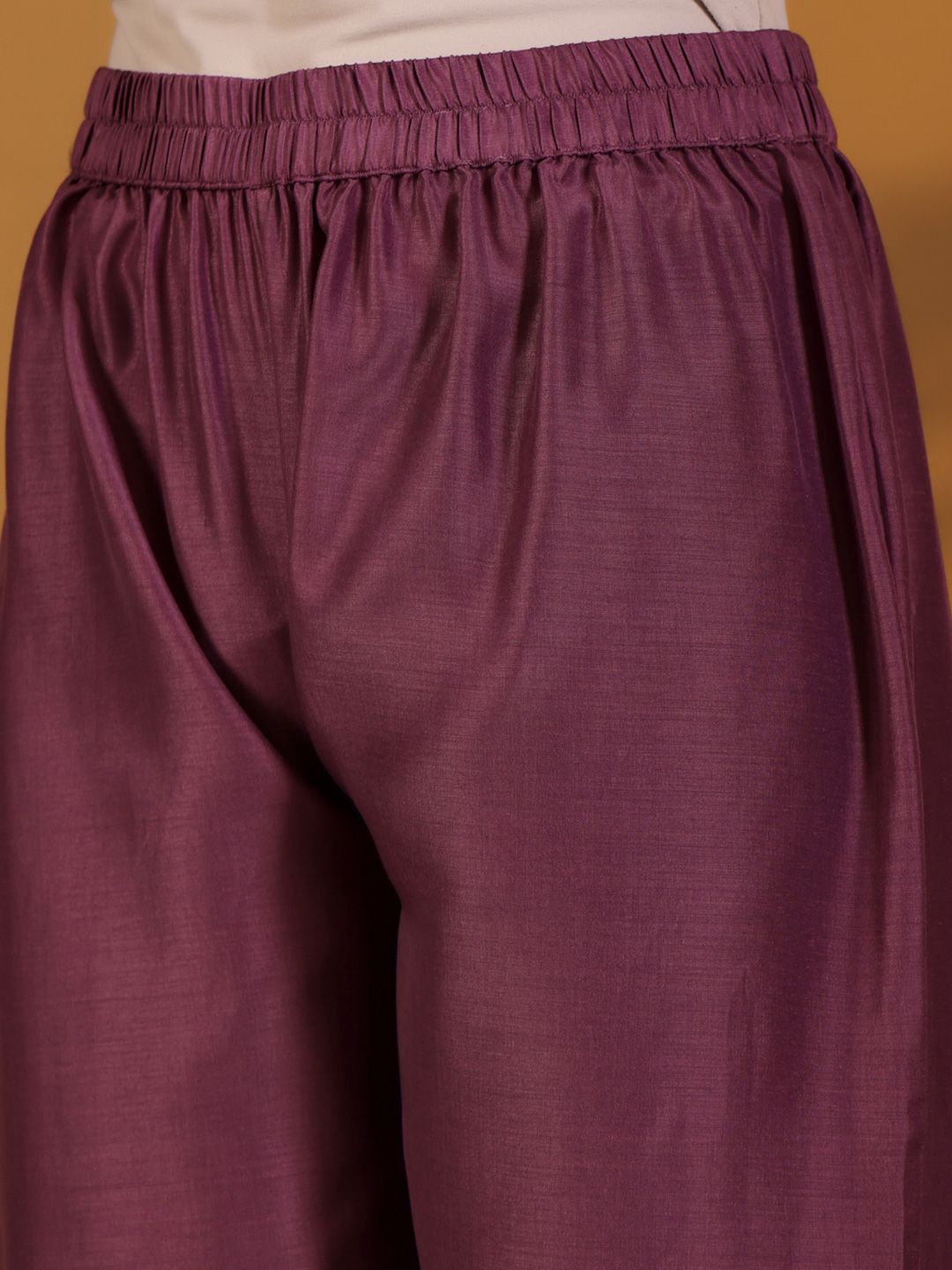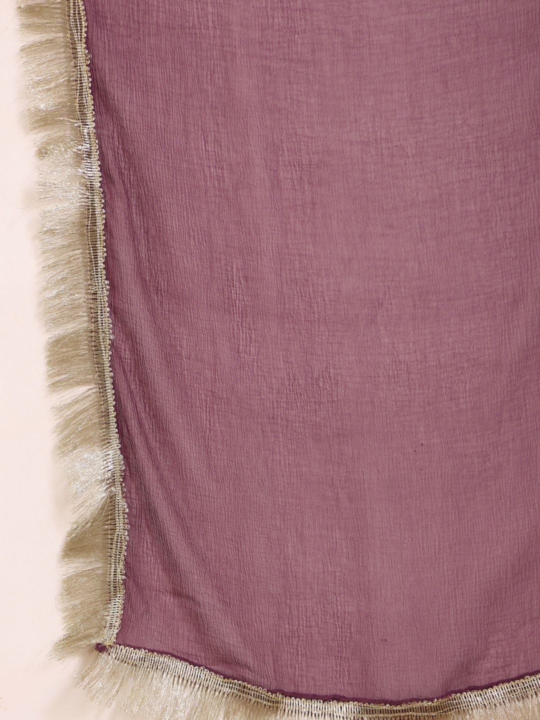 Mauve and gold-toned embroidered kurta with trousers with dupatta