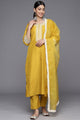 Yellow & white embroidered Kurta with Trousers with dupatta