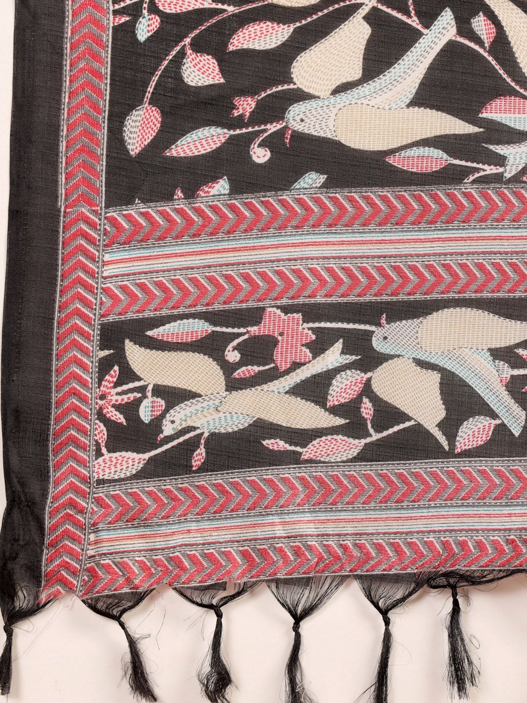 Dhiyona VA Women'sFloral Embroidered Thread Work Notch Neck Straight Kurta With Trousers & Dupatta