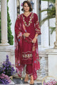 Maroon, green and blue embroidered kurta with trousers and dupatta