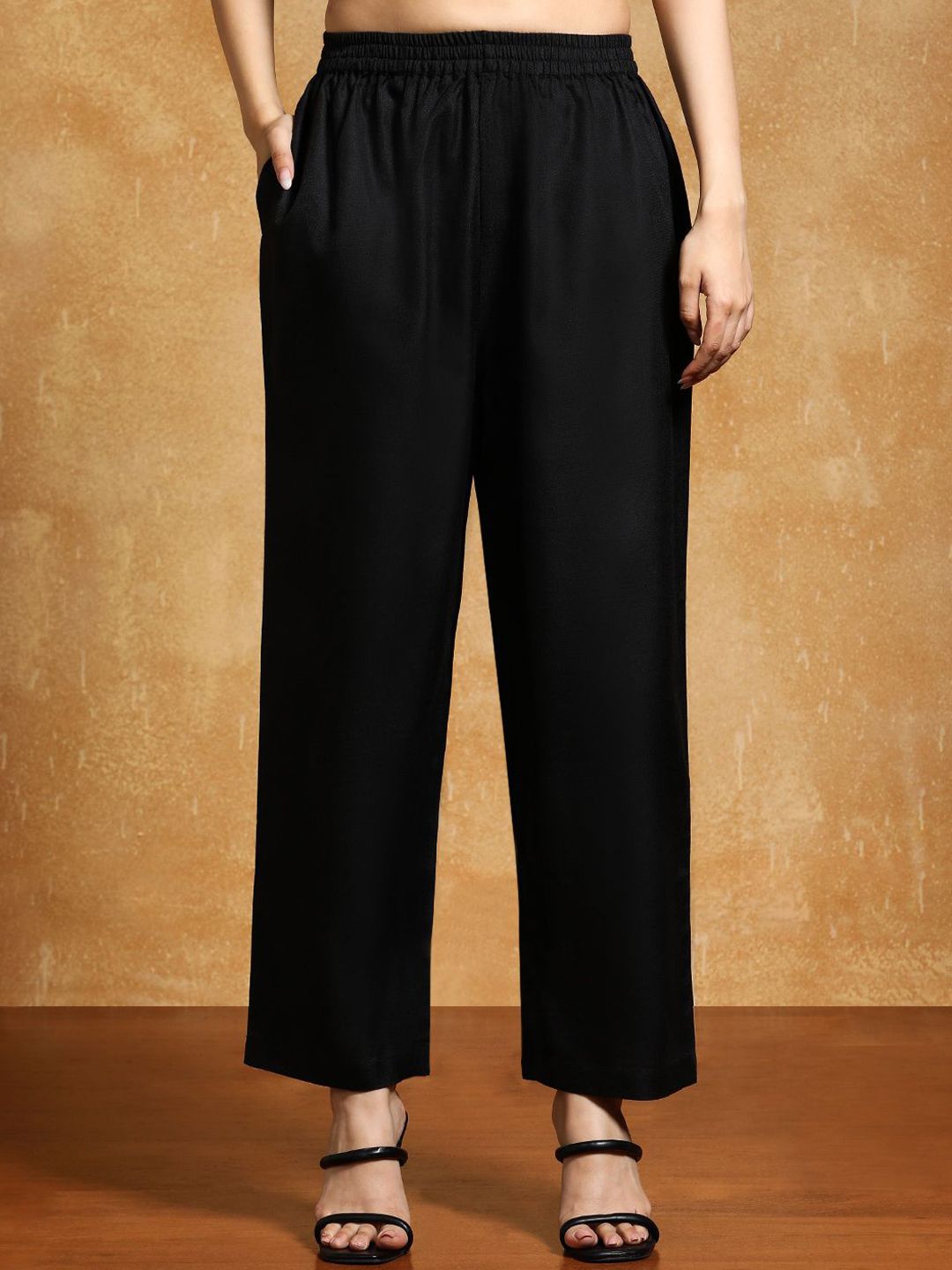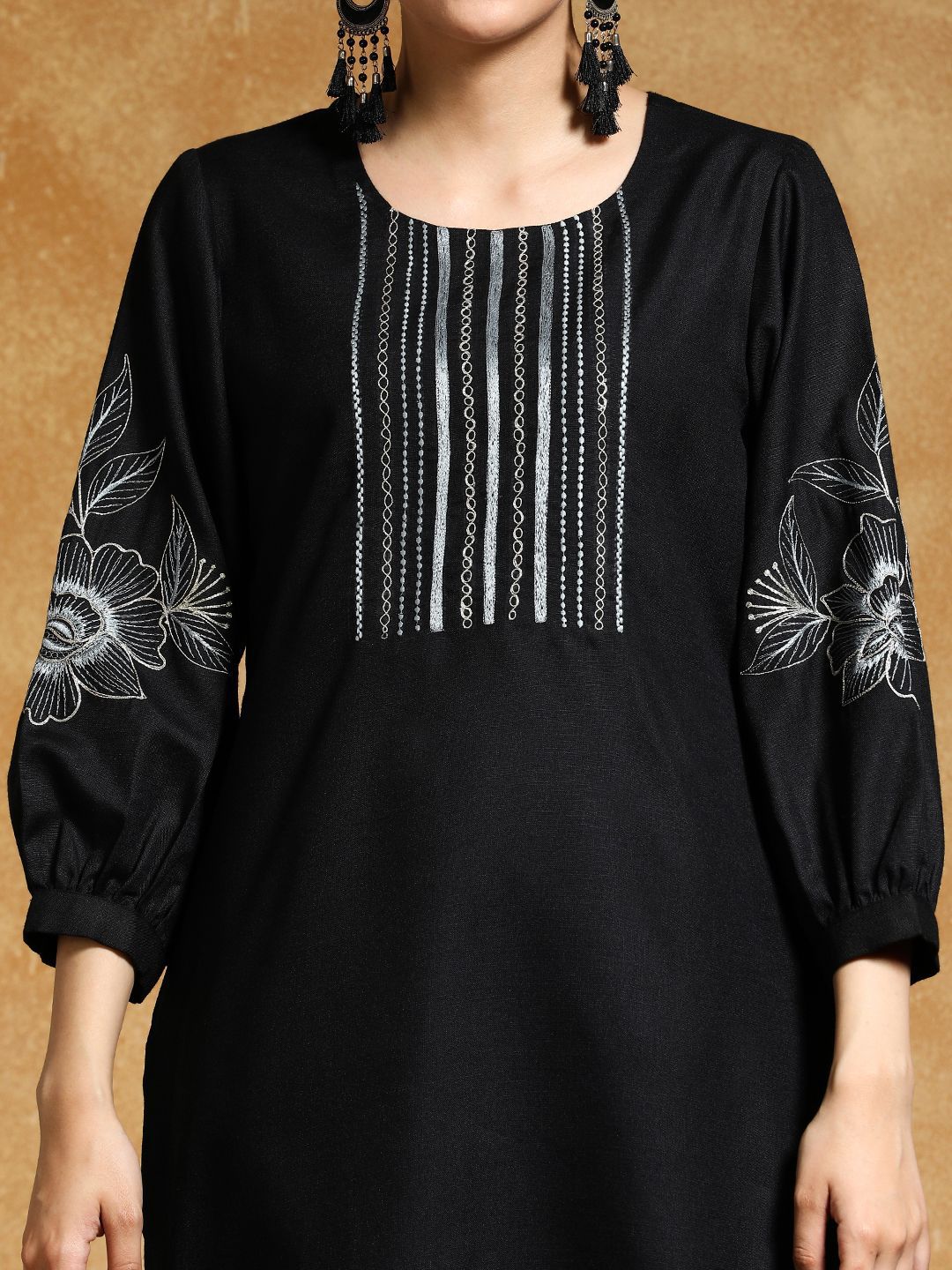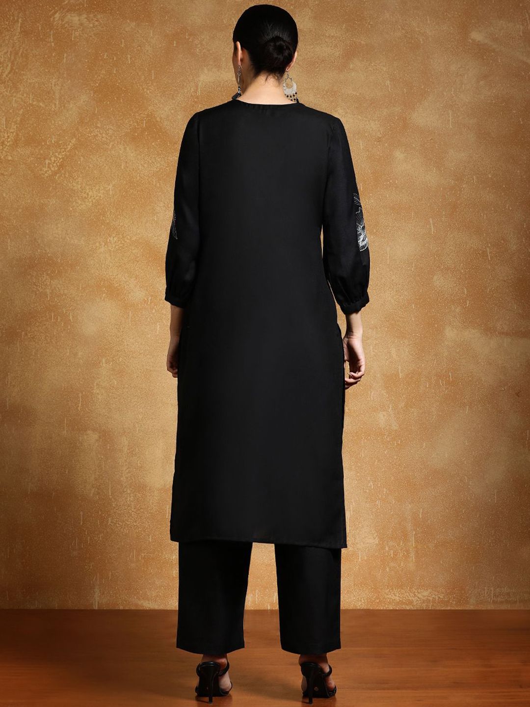 Dhiyona VA Women'sFloral Embroidered Thread Work Round Neck Straight Kurta With Trousers