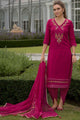 Fuchsia, green and yellow embroidered kurta with trousers and dupatta