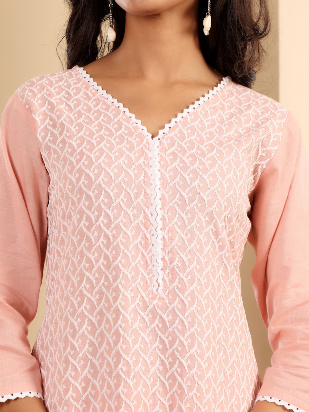 Dhiyona VA Women'sFloral Embroidered Thread Work Straight Kurta With Trousers & Dupatta